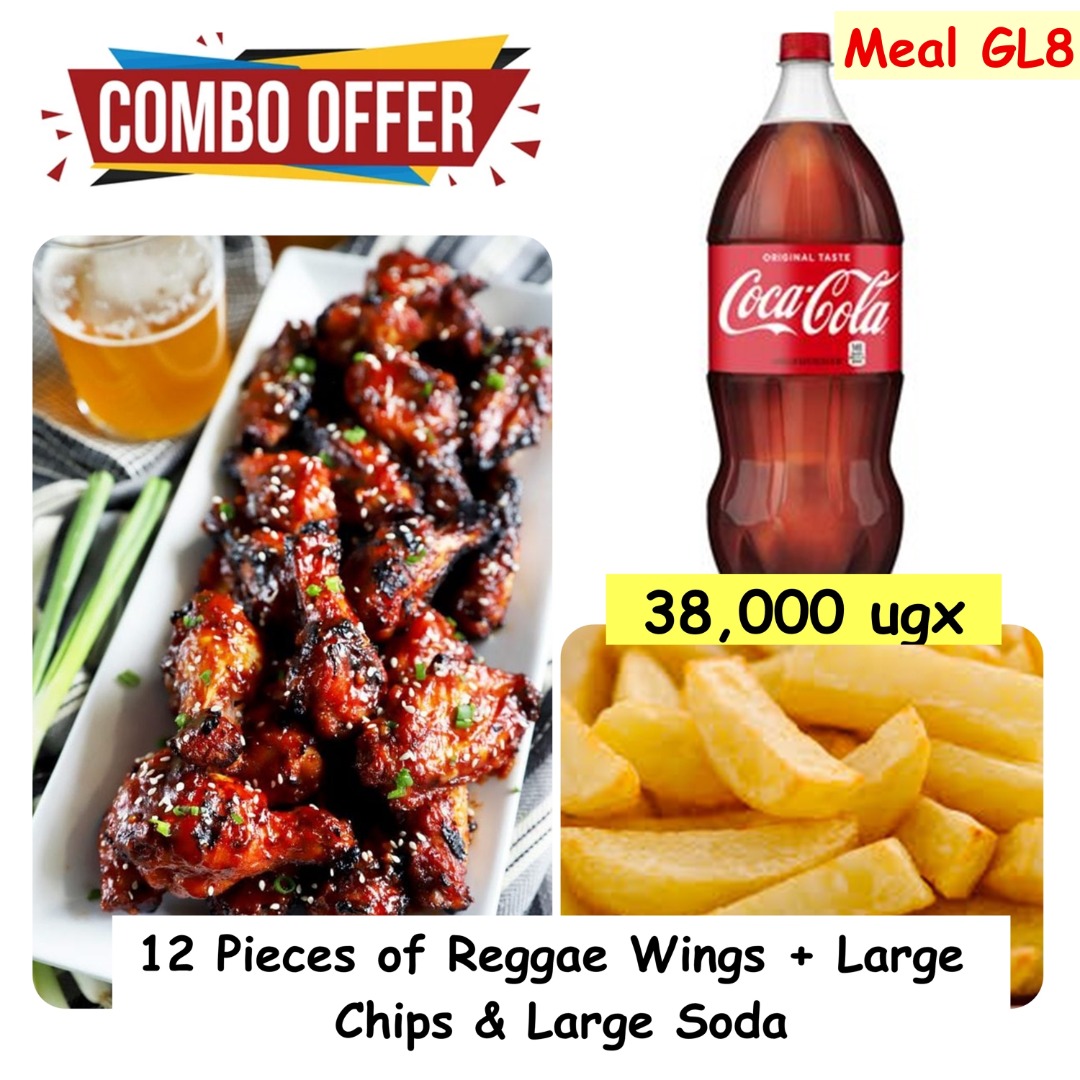 12 pieces of reggae wings large chips and large soda